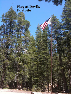 When we got down, we found out we had to take the bus to Devils Postpile, got our tickets and hopped on the bus. NO time for lunch. The ride down was speedy and curvy and a few of us were feeling a bit queasy when we got off the bus. Once we got to our destination we had a half mile walk in to Devils Postpile, it was an easy walk, I think the only thing really bothering us would be the elevation issues. The monument was interesting and hope the pictures will show that when I get them posted. In this area there are tent campgrounds, some gorgeous lakes, the river was flowing swiftly and the waterfalls were awesome. On the bus back to the parking lot, a family of four got on with two Ridgeback dogs. The Dad was sort of an ass, evidently they just hiked out about four miles after camping for three days and could not get on some of the busses ahead of us because they were full. He yelled at our driver and she put him in his place right away. The interesting thing was the dogs, they were so well behaved and had packs on carrying some of their supplies, like camp stove fuel and other stuff. Good looking animals. By the time we got back to the parking lot, I think our group was pretty tired and hungry, we did not have lunch and already 4:00 in the afternoon. We were having huge dinner at camp tonight so we all headed back.