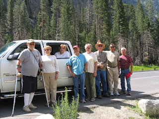 Day one for us, however the majority of the Sirs 15 RV group arrived yesterday. We met up with Dorothy and Ed at Raleys in Jackson about 9:50 am and started on the trip up Highway 49. This was the first trip for the RV since the repair. We were having engine trouble with the coach for the last year when it would bog down on hills. We had it into CAT for repairs twice and the second time it appears they got the problem resolved. Believe me when I say it got the ultimate test on this trip on the steep twisty Priest Grade on Highway 120. I followed in our new tow car, as we have not had the tow gear installed parts are ordered so hope it will be set up by the next trip. We finally gave up the Smart Car for a Chevy HHR that is easy to tow without a lot of prep to tow. Loved towing the Smart Car but when we had to drive 527 miles home from the Desert with no cruise control, decided to upgrade to a larger car. Not really sure what the HHR stands for, however Ed calls it the Horney High Roller. Does that surprise anyone? Anyway, we are following Ed and Dorothy, another RV is in front of them and there is nowhere to turn off this road or a passing lane. An idiot in a jeep behind me was riding so close and trying to pass on double line on curves just about any stupid way he could think of. When he did pass I was so hoping a cop was around, he could have had a huge pile up and people killed. What an @ss. We arrived at Yosemite Lakes Campground about 12:10 pm. We are about 19 miles from Groveland and 5 miles from the entrance to the park. Most of our group, Len and Paula, Dave and April, Butch and Betty, Arnie and Marilynn, Gary and Phyllis, Steve and Sue, Andy and Jan were already in camp, Ed and Dorothy, Ed and I thought we were the last ones in but Jeff and Gail were the last to arrive, making ten couples.